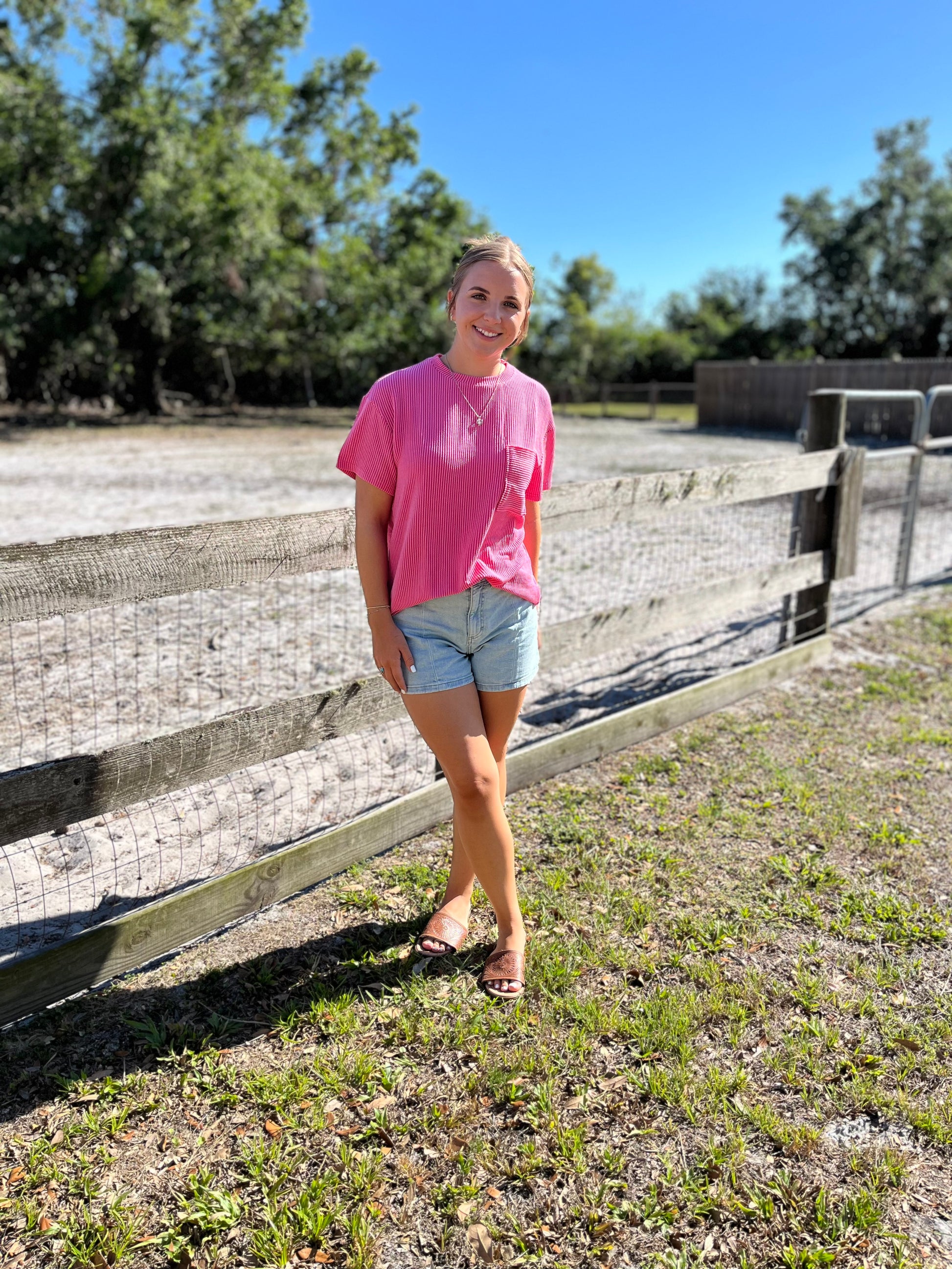 An expertly crafted oversize tee in corded knit fabric, featuring a relaxed fit, crew neck, drop shoulder, and tunic length. With a stylish chest pocket, this shirt not only adds a chic detail but also provides a slim and casual feel. Perfect for any occasion. Polyester/Viscose/Elastane Size Info: US Size Range. Small 0-4, Medium 6-8, Large 10-12, XL 14-16, 2X 18-20 See size chart for approximate measurements. Model is wearing size small.