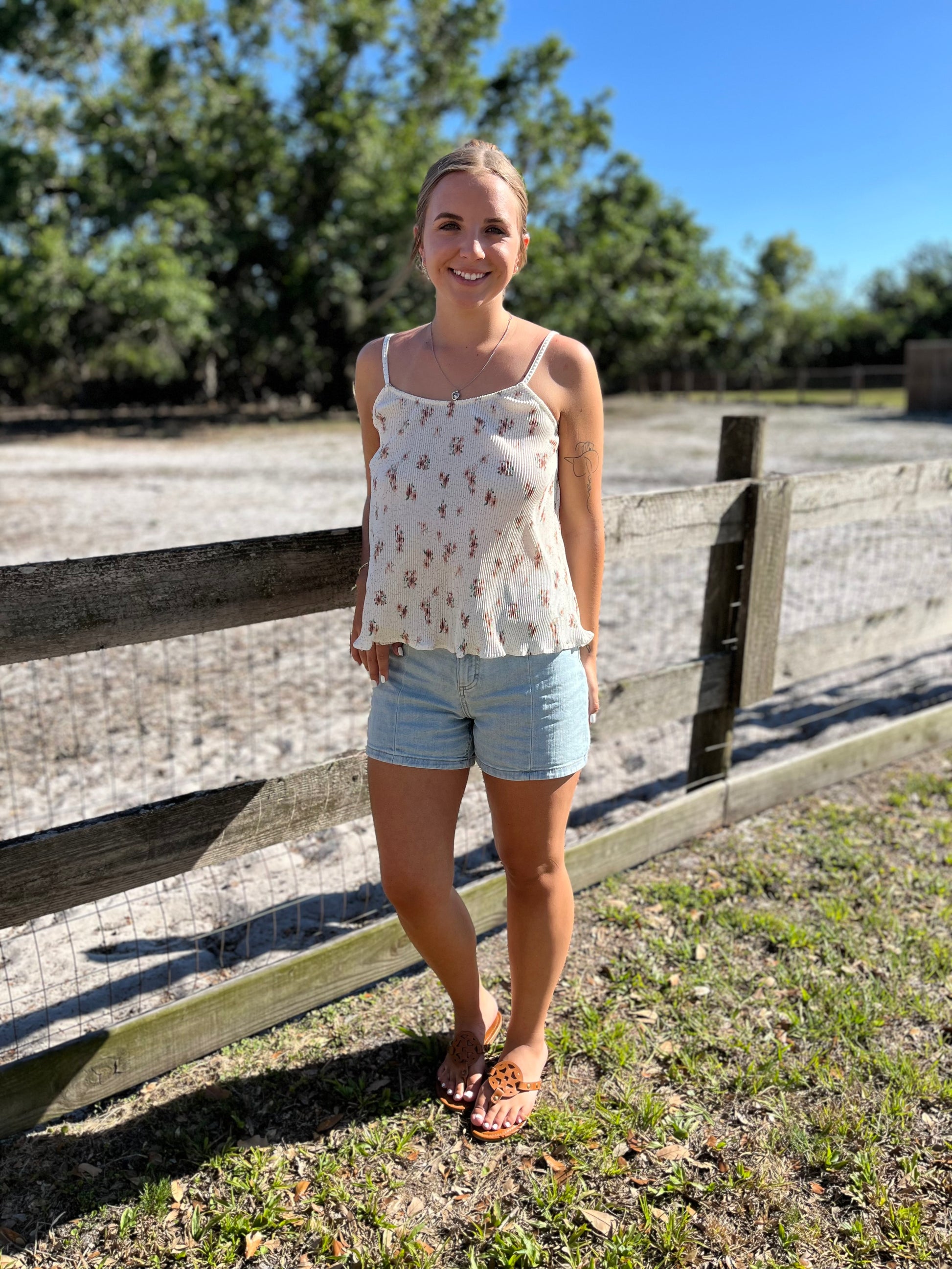 Elevate your summer style with our top. The unique floral silhouette and pleated texture add a touch of elegance. The big bow back accent adds charm to any outfit. And with adjustable spaghetti straps and lightweight, breathable fabric, you'll be comfortable all day long. 100% Polyester Size Info: US Size Range. Small 0-4, Medium 6-8, Large 10-12, XL 14-16, 2X 18-20 See size chart for approximate measurements Shop Spring , Summer, Fall , Autumn and Winter styles with Pretty Bash wholesale. Model is wearing a small.